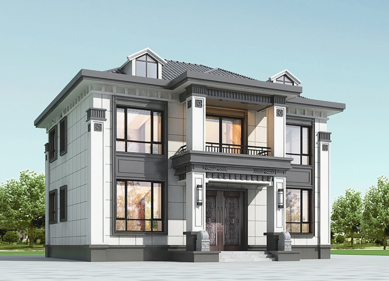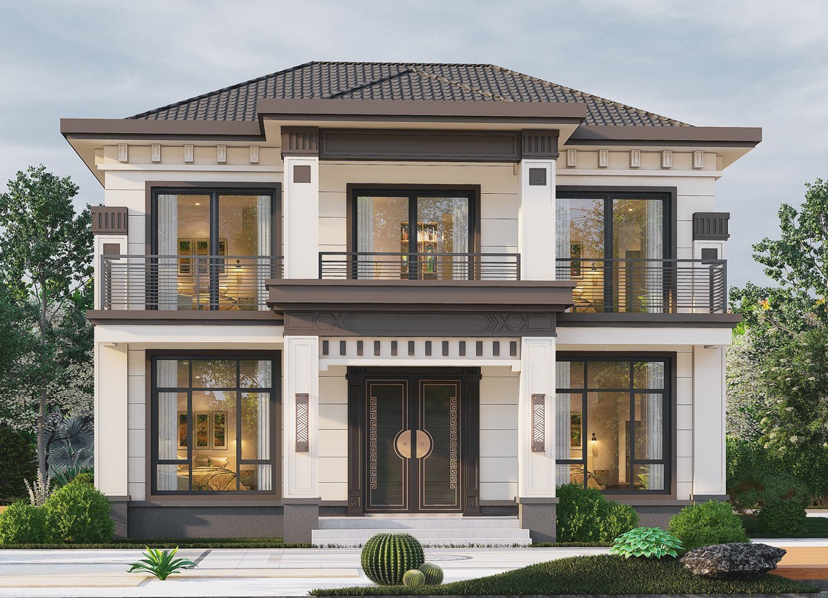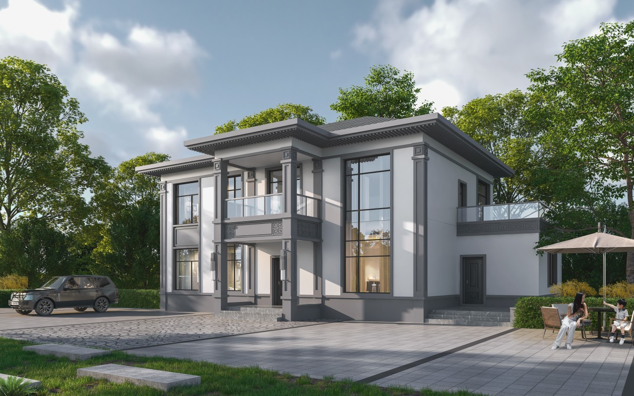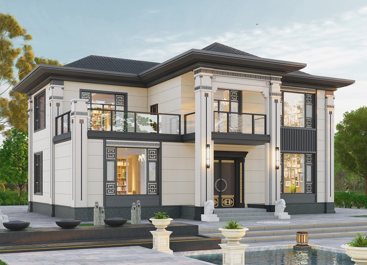 巴中005 两层新中式(11.36x11.76米)-【易设计】