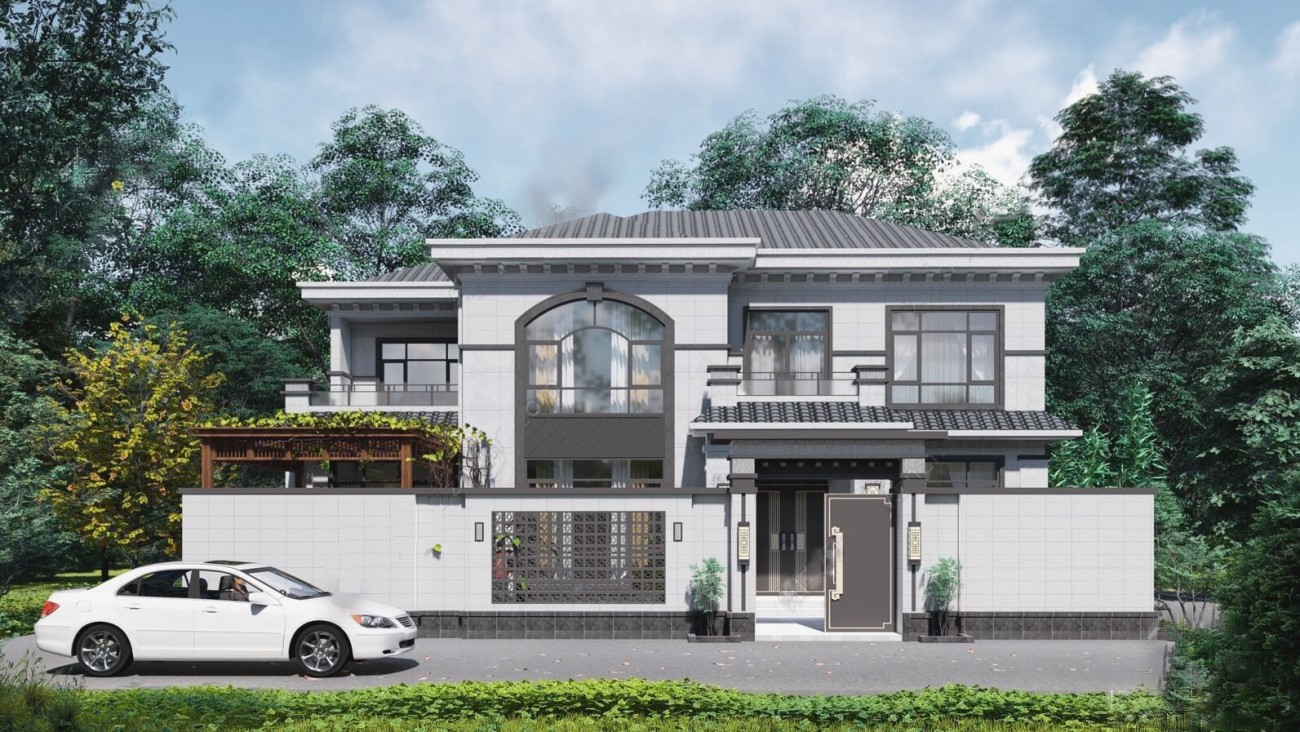 巴中011 两层新中式(15.43x12.66米)-【易设计】